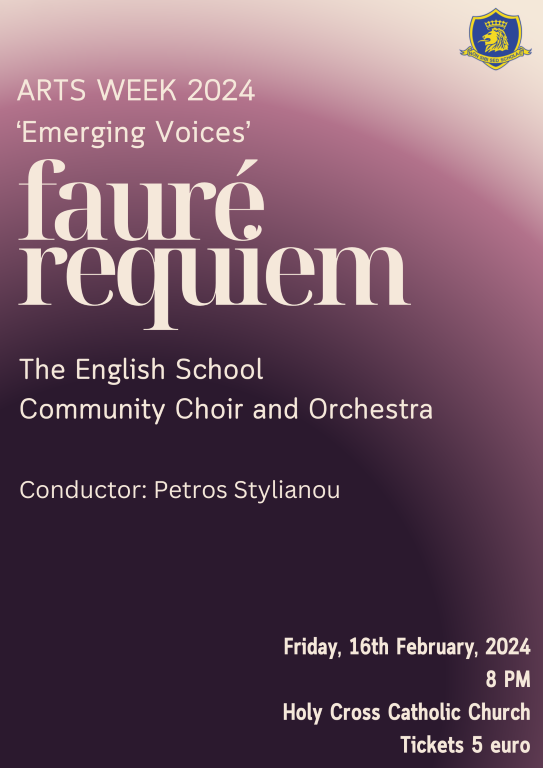 We would like to extend an invitation to all our events scheduled for the week. Please find attached the program, with key highlights including the Art Exhibition and the Drama devised performance on Monday, February 12th, as well as Faure’s Requiem on Friday, February 16th.