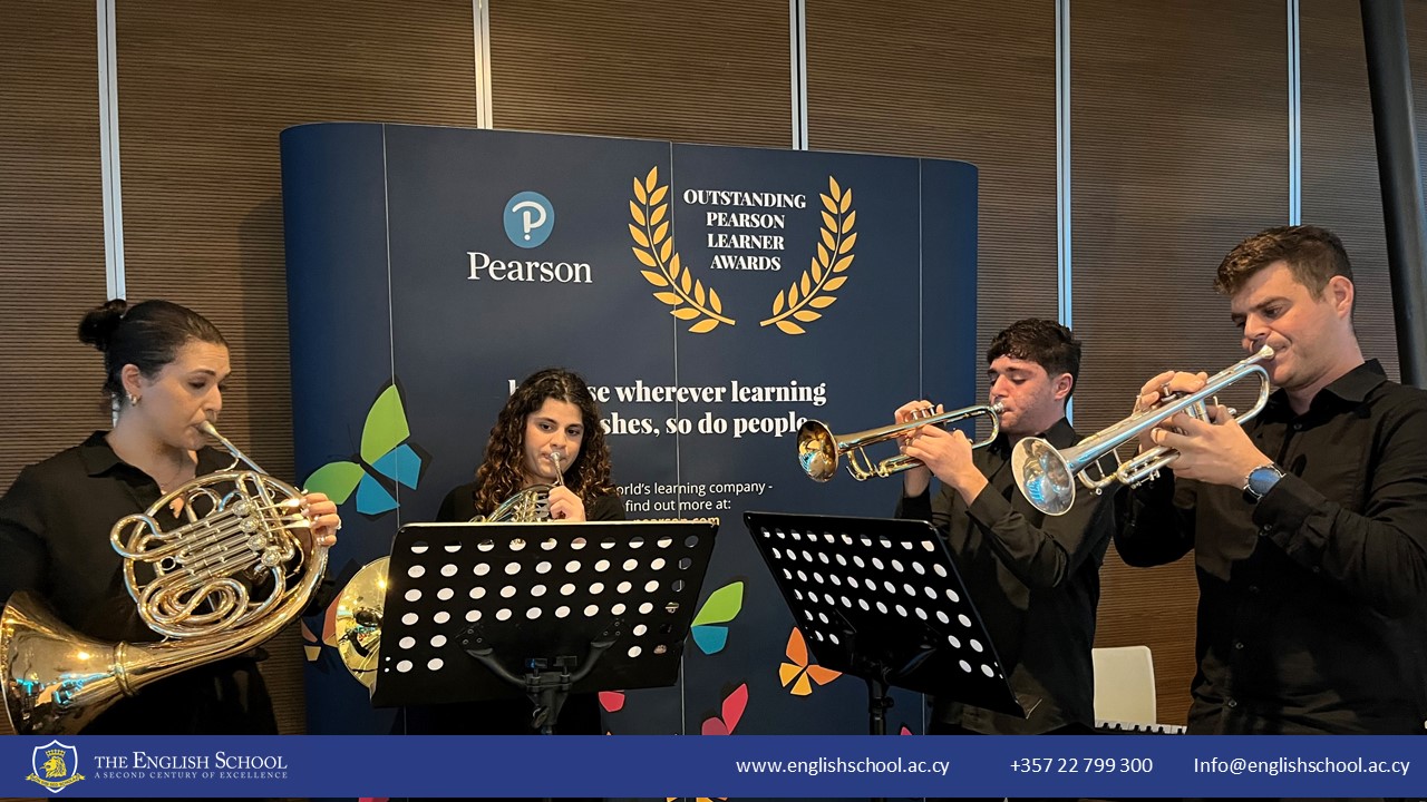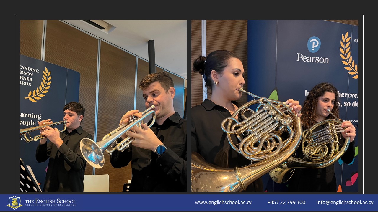 The ceremony was gracefully commenced by Andreana and Nikolas, alongside our esteemed instrumental program teachers, Ms. Annita Skoutella and Mr. Thelios Georgiou. Their performance of the majestic ‘La Mourisque’ in a brass quartet set a tone of excellence for the event.