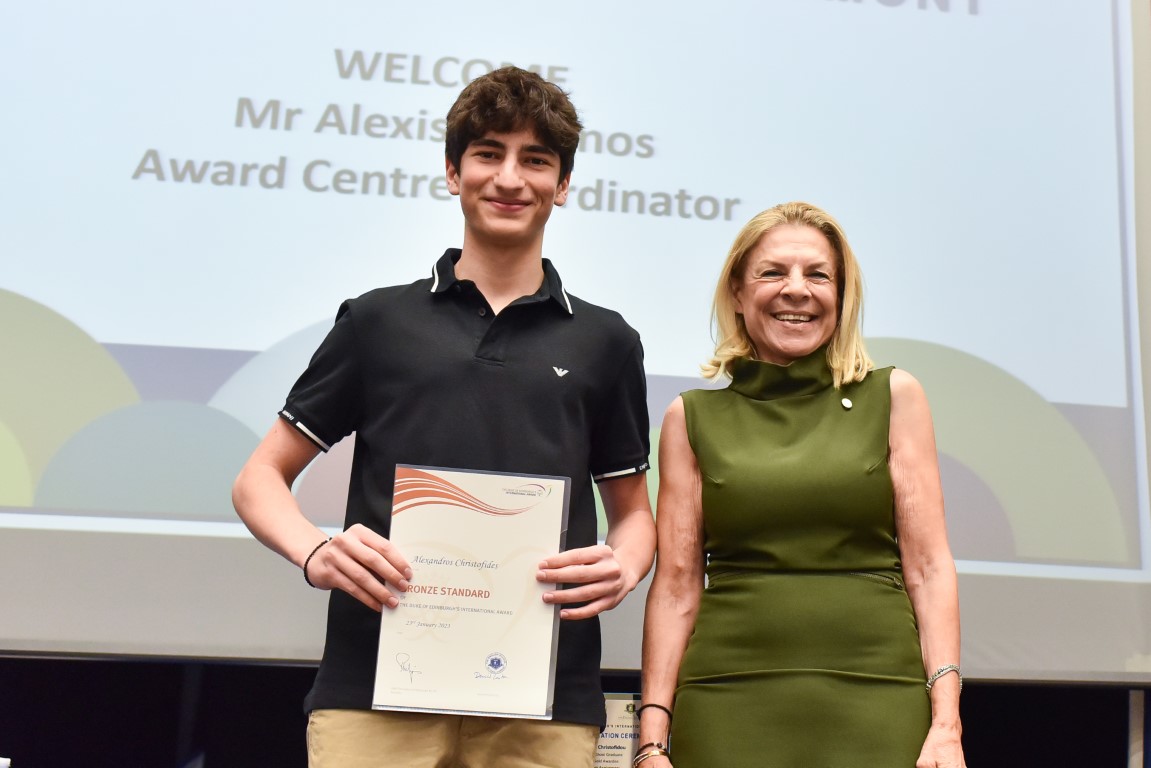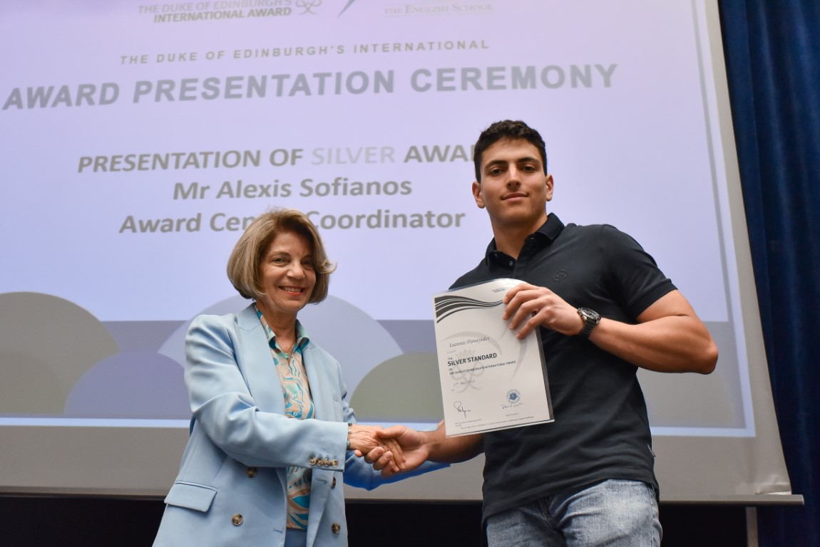 On the occasion of the Duke of Edinburgh’s International Award Presentation Ceremony this year we were delighted to welcome back to the school H.E. the Minister of Health, Dr Popi Kanari, as a guest of honour. Dr Kanari is an English School graduate and she completed the Bronze and Silver Awards while at the school. She briefly worked at the school as a Chemistry teacher and also helped with the delivery of the Award during that time. The Minister has 2 sons who are also English School graduates and they were also involved with the Award during their time at the school. She gained a strong connection with the Award over the years and she was thrilled to attend the event and present the new Silver Awardees with their certificates.
