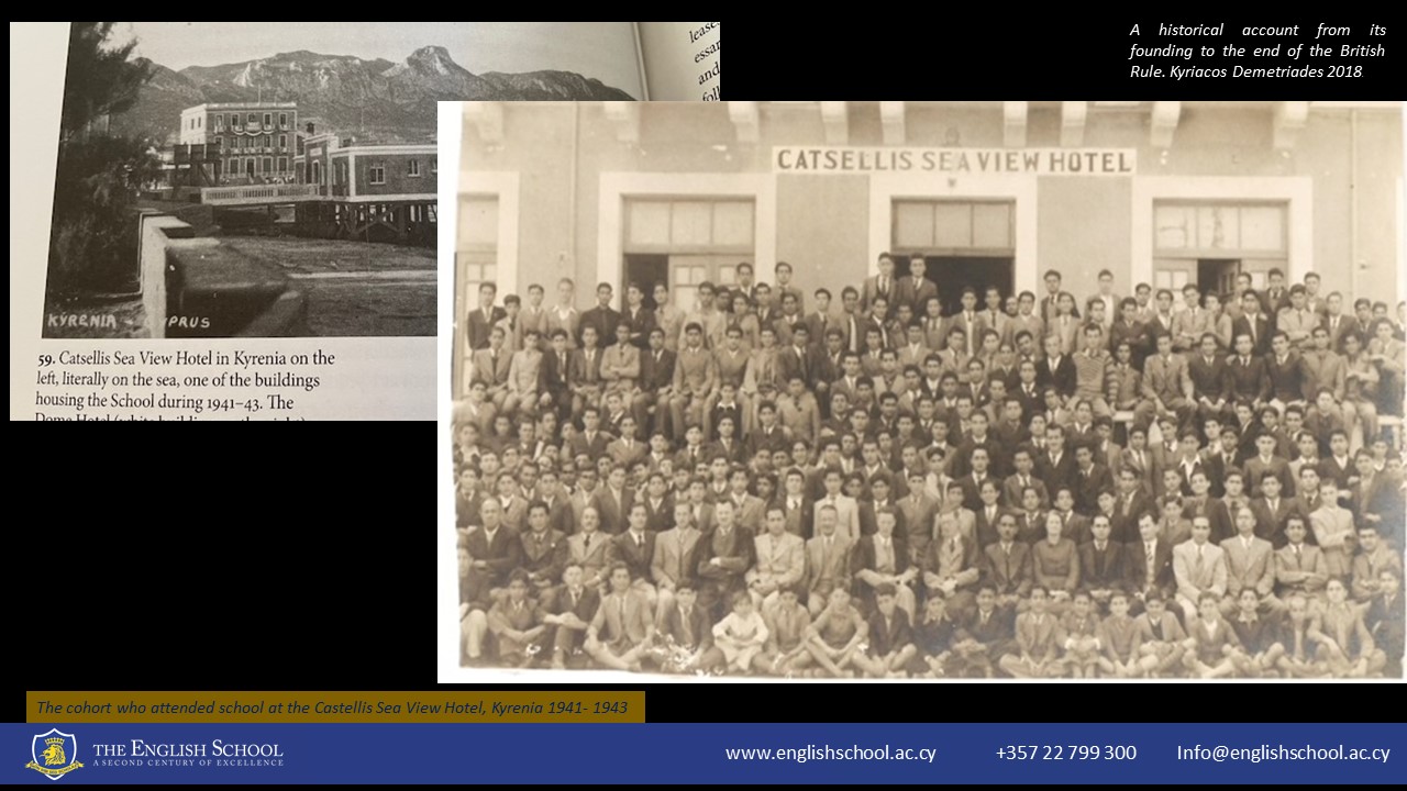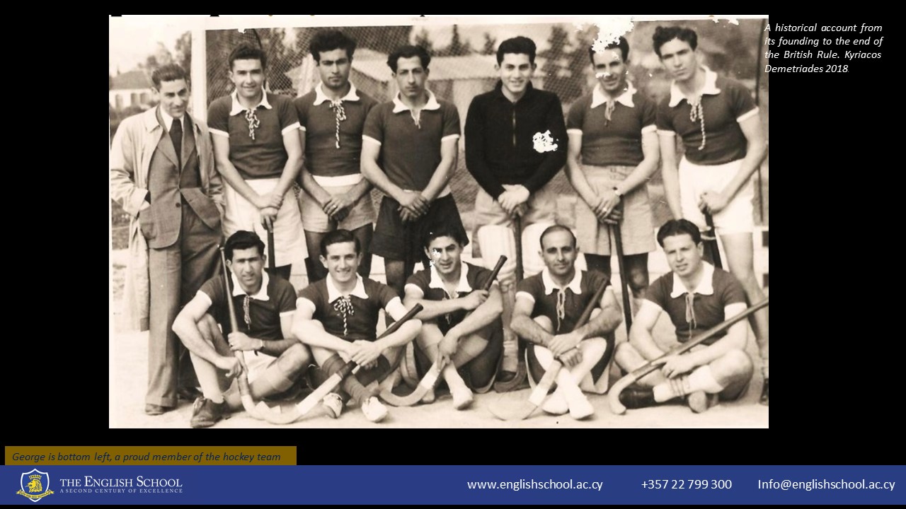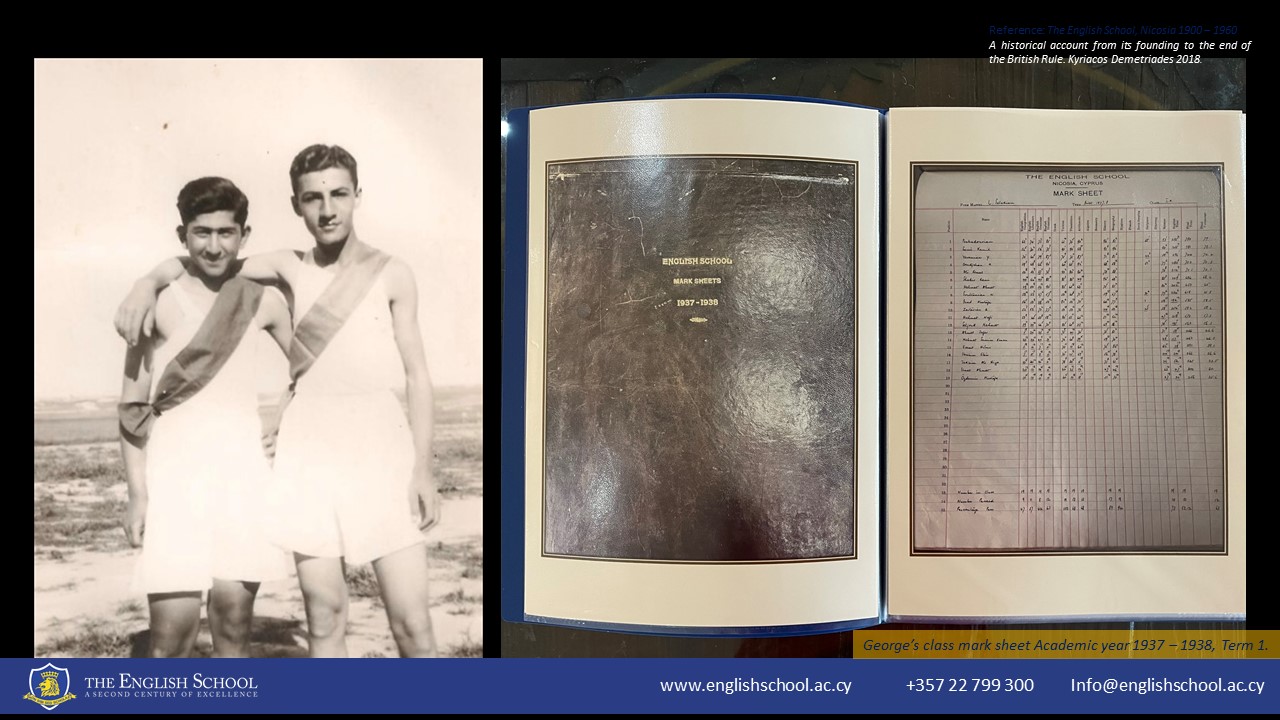 George Zartarian's association with The English School began in 1937 when he first walked through our doors as a student. He embarked on his educational journey, and despite the challenges presented by the tumultuous World War II era, he graduated in 1943. George was among the cohort of students who continued their studies even during the war. In September 1941, due to the military takeover of our school premises, they relocated to Kyrenia, where their education continued in unique settings, including Catsellis Sea View Hotel and The Dome Hotel.