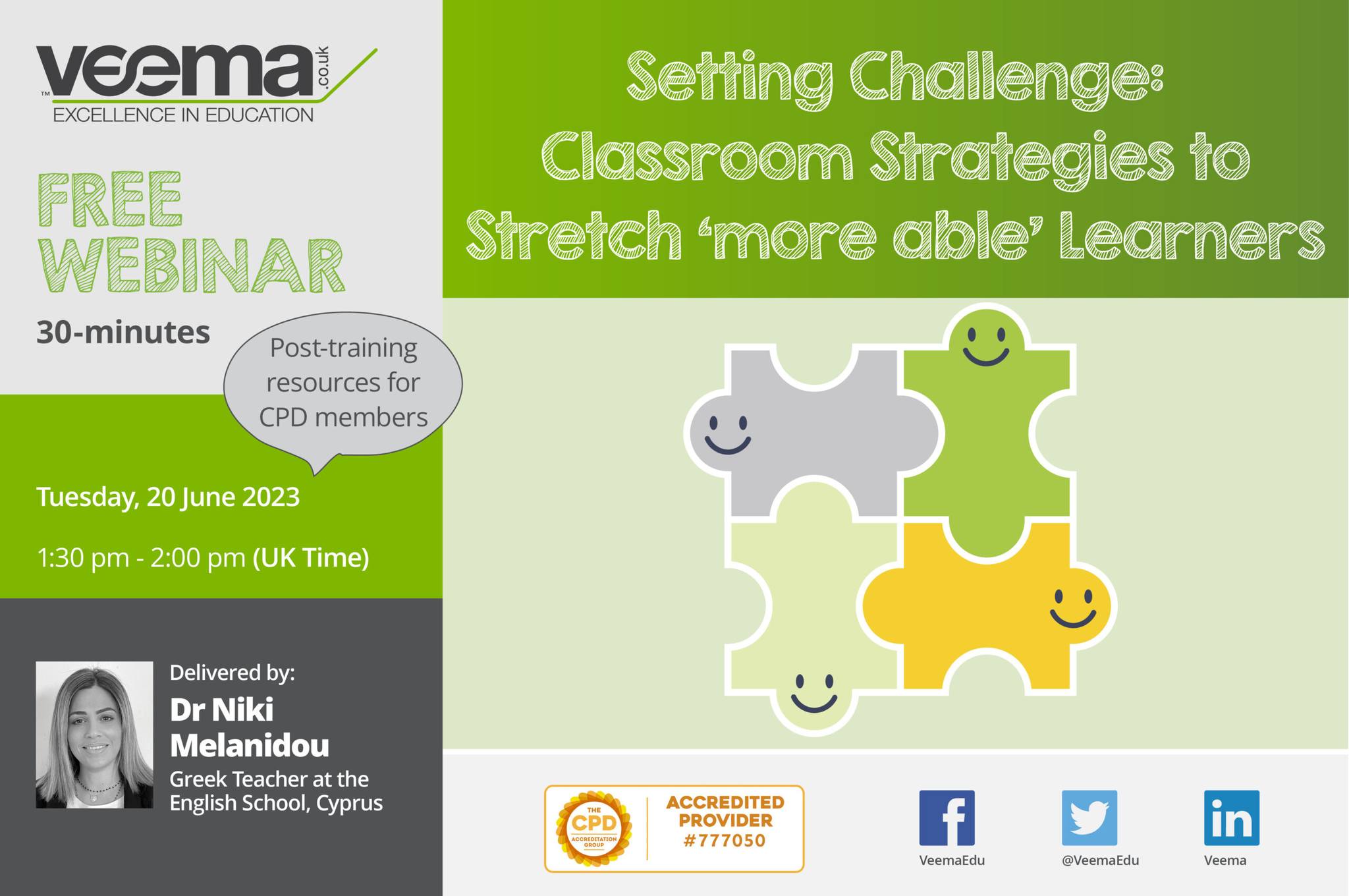 During this webinar, Dr Niki Melanidou will delve into effective classroom strategies specifically designed to challenge and support the educational growth of 'more able' learners. Drawing upon her extensive expertise and experience, Dr Melanidou will explore innovative teaching methods, resources, and techniques that can be implemented to ensure these students are appropriately challenged and engaged.