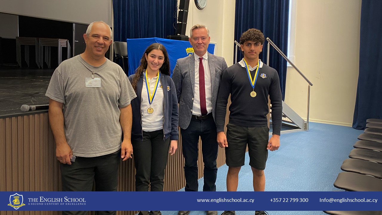 During the ceremony, the award winners were presented with their prizes by the school's Chairperson of the Board, Mr Charalambos Iosephides, the Chairperson of ESOBGA, Mr Andreas Anotniou, our Headmaster, Mr David Lambon and our Guest of Honour H.E. Mr Conor Long, Irish Ambassador to Cyprus and other distinguished guests. The prizes were awarded for academic excellence in a wide range of subjects, including mathematics, science, languages, humanities, and the arts.