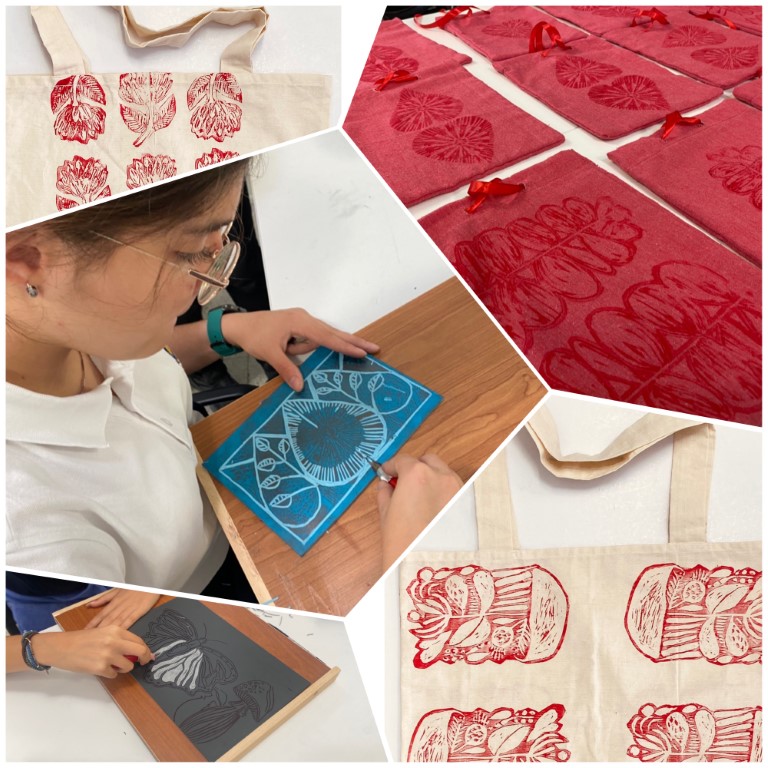 Last month, students had the opportunity to participate in Lino Printing workshops. They explored the world of Lino carving and printing and created unique Tote bags for the Christmas Market Fundraiser. These workshops provide students with an opportunity to showcase their artistic talent but also help them develop valuable skills such as patience, precision, and problem-solving.
