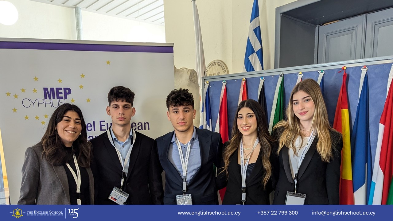 Marielena Kyriacou our English School MEP Ambassador held the position of a Committee President during the session, guiding new MEP delegates through debates, lobbying and discussions while four of our Year 5 EYP ES Club members including Nicolas Alexandrou Taliotis, Anna Maria Menelaou, Sophia Doris Kalochoritis and Chariton Charitonos attended the session as delegates.