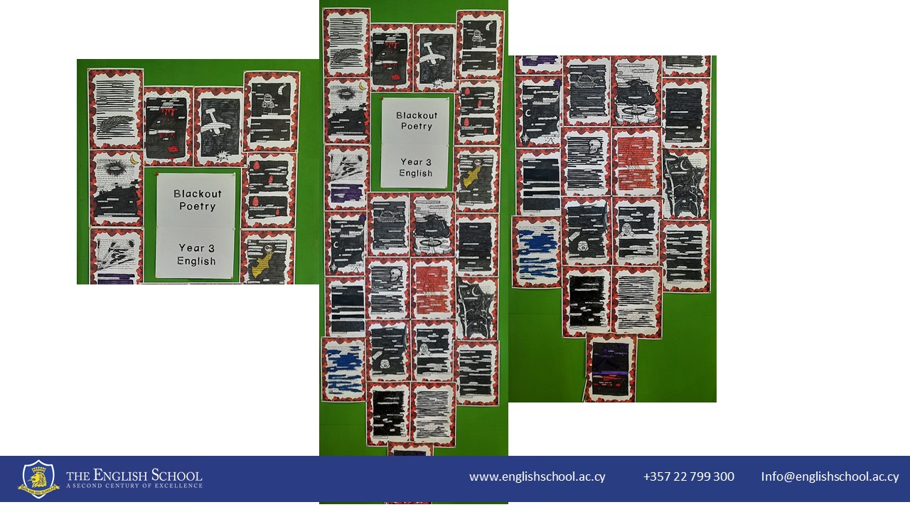 Our Year 3 students were tasked with selecting a poem from their unit on war poetry and identifying keywords or phrases that spoke to them. They then used these words to create their own poem by blacking out the remaining text on the page.